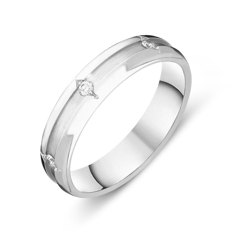 This elegant weddingband is beautifully crafted fromplatinumand features a satin finished dipped channel which is adorned with a sequence of sparkling brilliant cut diamonds and engraved detailing, creating an extra touch of luxury to the piece. The satin finish of the channel creates a stunning contrast to the highly polished outer edges of the band, making this a truly unique piece. The platinum band is solid and substantial, making this piece perfect for everyday wear.