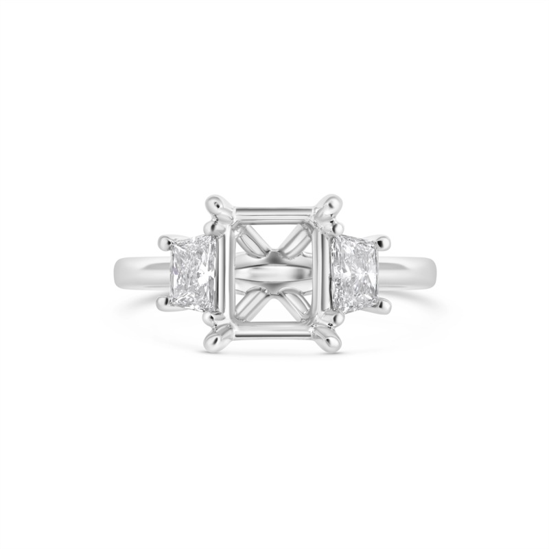 Ladies diamond ring in platinum. Set in the ring are two trapezoid cut diamonds with a total weight of 0.62 carat.