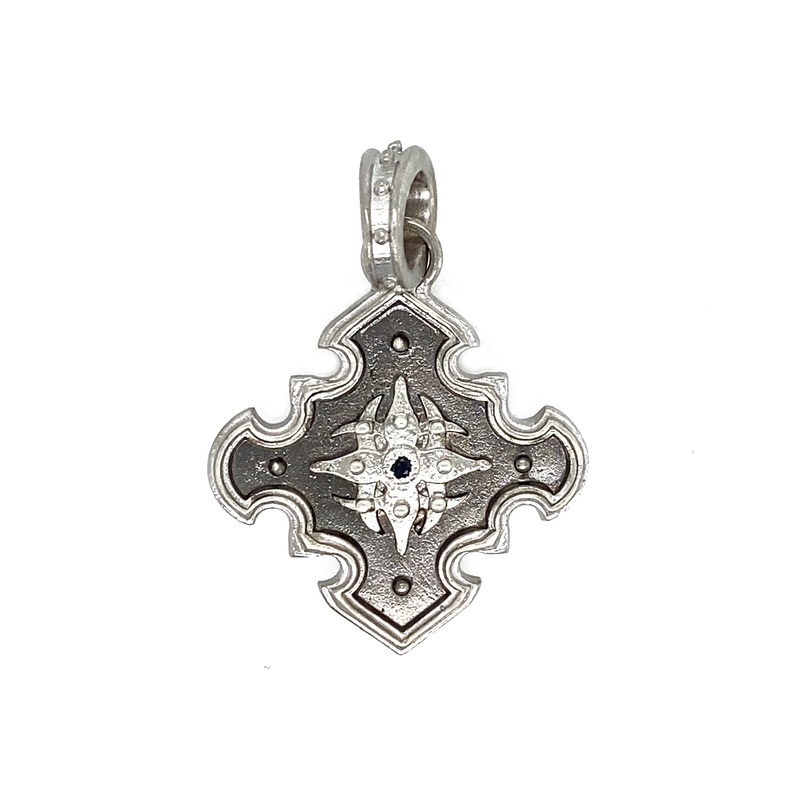 Sterling Silver and Grey Sterling Silver Pointed Cross Pendant