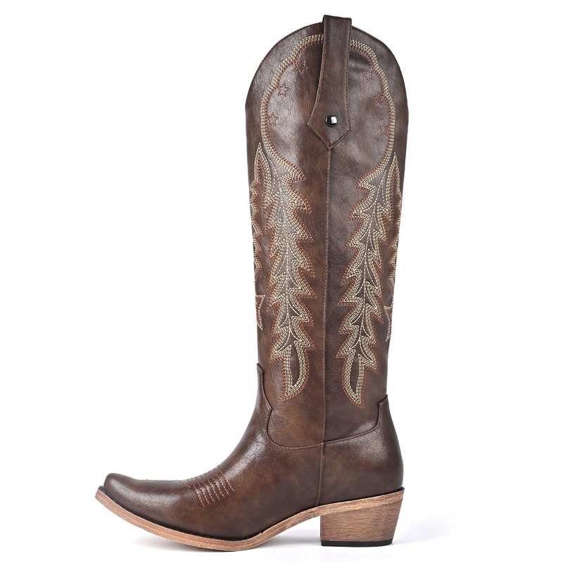 Pointed Toe Embroidery Knee High Western Boots