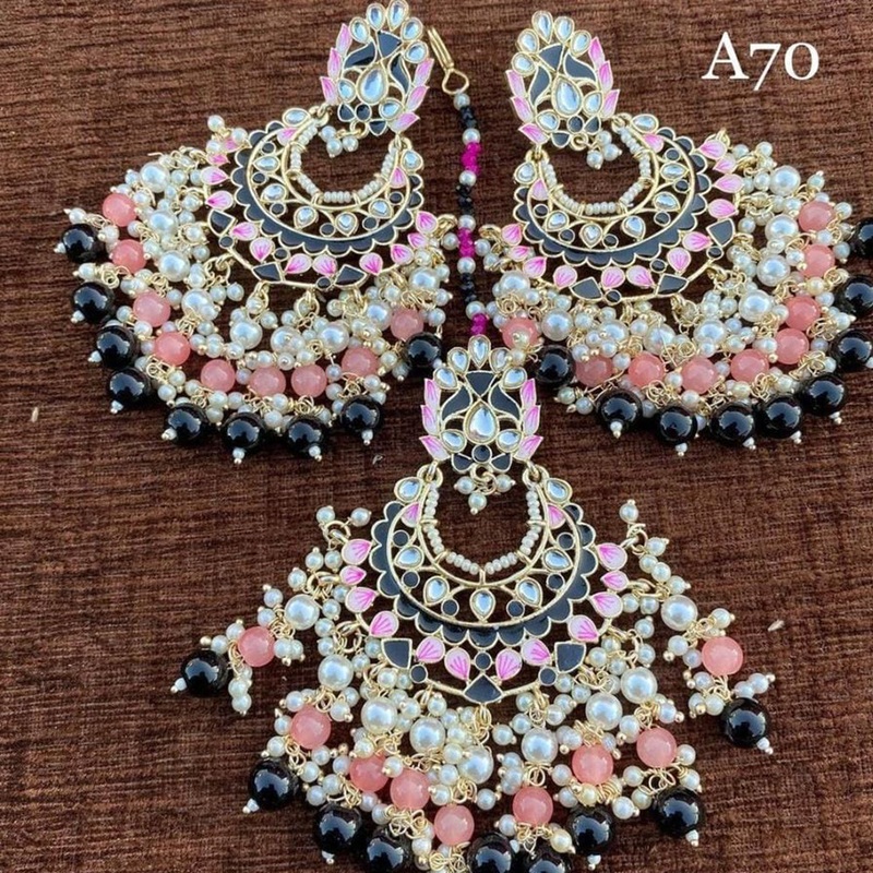 These elegant Pooja Bangles Gold Plated Kundan Stone Earrings With Mangtikka will add a touch of luxury to any outfit. The gold plating ensures maximum shine, while the kundan stone provides a subtle, eye-catching sparkle. The Mangtikka completes the look, making these earrings perfect for any special occasion.