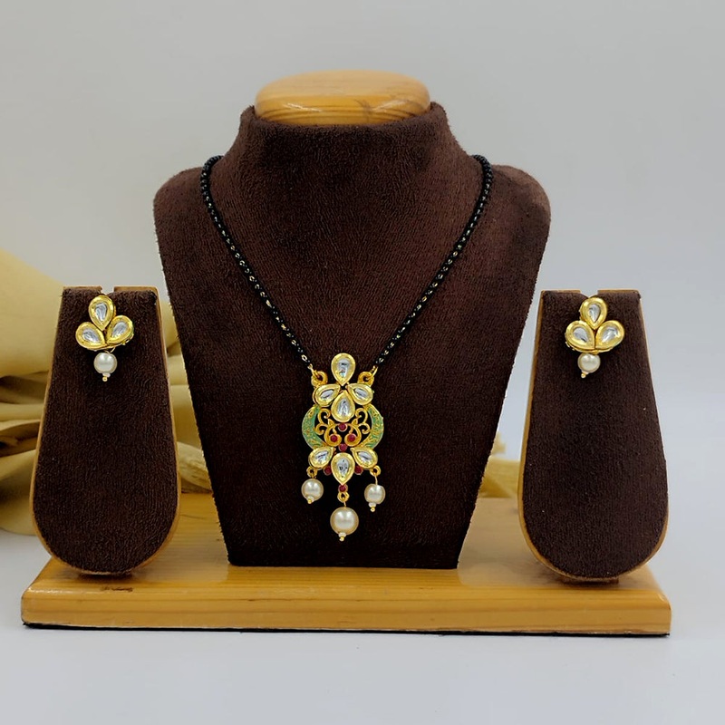This Pooja Bangles Gold Plated Mangalsutra is the perfect way to add a touch of elegance and luxury to your wardrobe. Crafted from premium-grade gold plating, it is sure to elevate any look. Distinguished yet timeless, its shimmering silhouette adds a hint