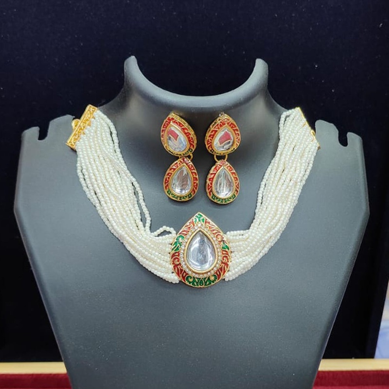 This Pooja Bangles Gold Plated Pearl Choker Necklace Set is the perfect addition to your jewelry collection. Made with high-quality materials, this set features beautiful gold plating and delicate pearls, adding a touch of elegance to any outfit. Elevate your style with this stunning set that exudes beauty and sophistication….Note: Image may be vary slightly from the actual product.