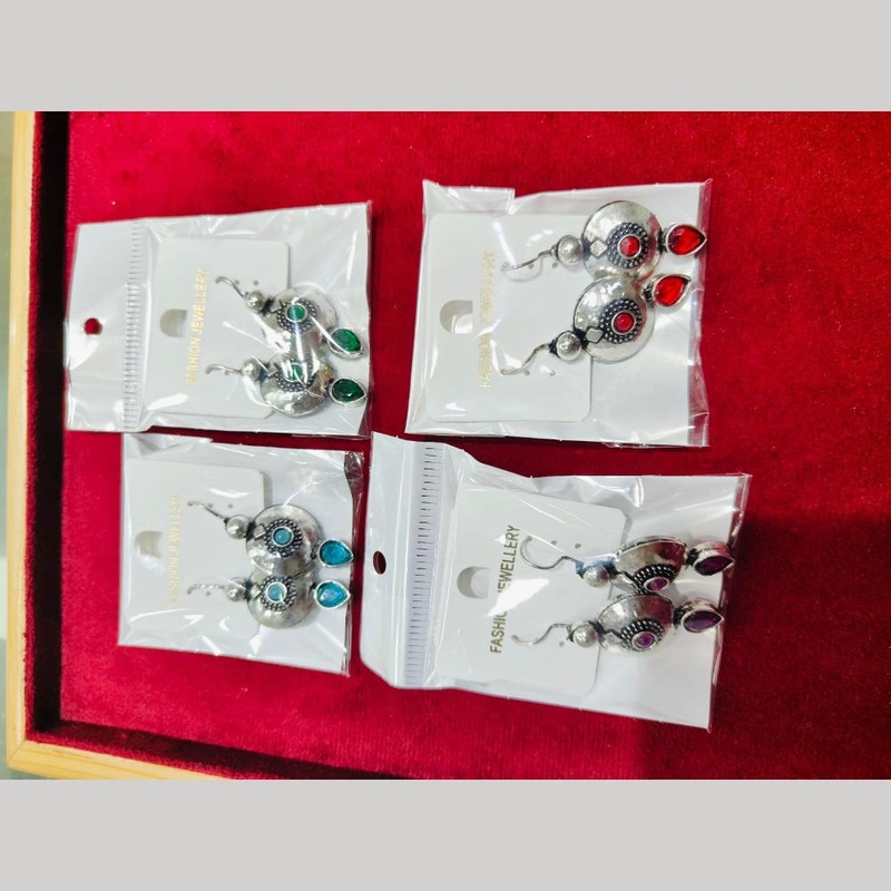 These Pooja Bangles Oxidised Plated Kundan Stone Dangler Earrings add a touch of elegance to any outfit. The Kundan stones give a delicate shimmer, while the dangler style adds movement and flow. Available in assorted colors, these earrings are a must-have for any jewelry collection. Note: Image may be vary slightly from the actual product.