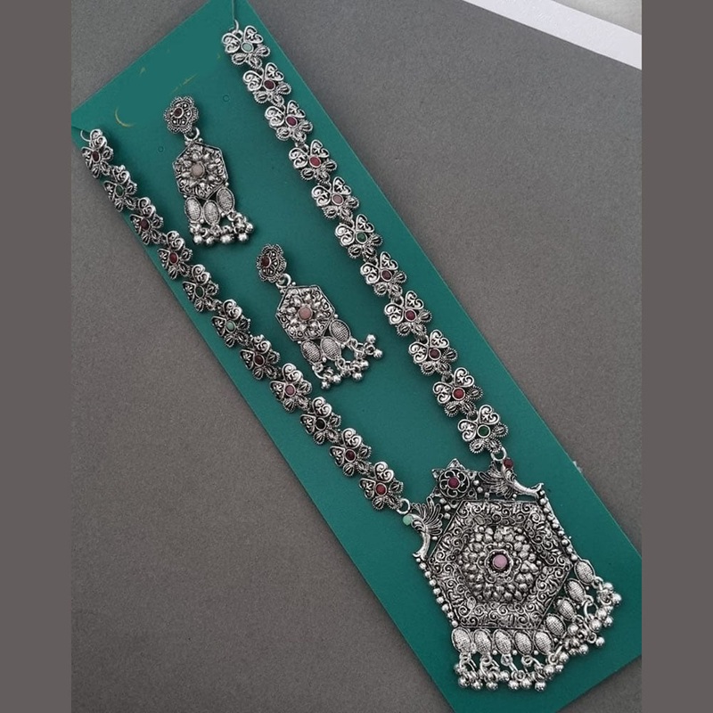Pooja Bangles Oxidised Plated Pota Stone Long Necklace Set