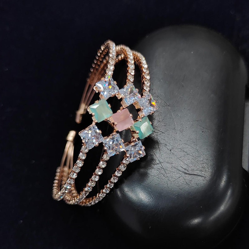 Crafted with Rose Gold plating and adorned with sparkling Austrian stones, the Pooja Bangles bracelet offers stunning elegance. The addition of an evil eye charm provides protection and good fortune, making it the perfect accessory for any occasion.Note: Image may be vary slightly from the actual Product.