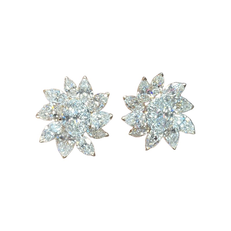 These 18kt yellow gold clip-on earrings are set with 22 diamonds, weighing approximately 22.00 carats in total. The diamonds have G-H color and VVS-VS clarity, making them high-quality stones. Weighing 20.40 grams and measuring one inch in length, these earrings offer both elegance and comfort.