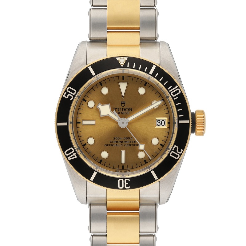 About The Watch:This luxurious men’s Tudor Black Bay S&G M79733N-0004 features a lustrous champagne domed dial adorned with circular hour markers. Encased within a stylish stainless steel 41mm case with solid caseback and uni-directional gold capped black aluminium graduated bezel. At the heart lies an automatic calibre MT5612 movement featuring seconds, minutes, hours and date functions. Wear this timepiece comfortably on your wrist with the inclusion of a stainless steel and yellow gold bracelet securely fastened with a stainless steel folding clasp. Bracelet measures approximately 20cm (including case).