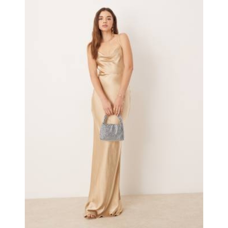 Shop the latest Pretty Lavish Bridesmaid Keisha cowl neck satin maxi dress in matte gold trends with ASOS! Free delivery and returns (Ts&Cs apply), order today!