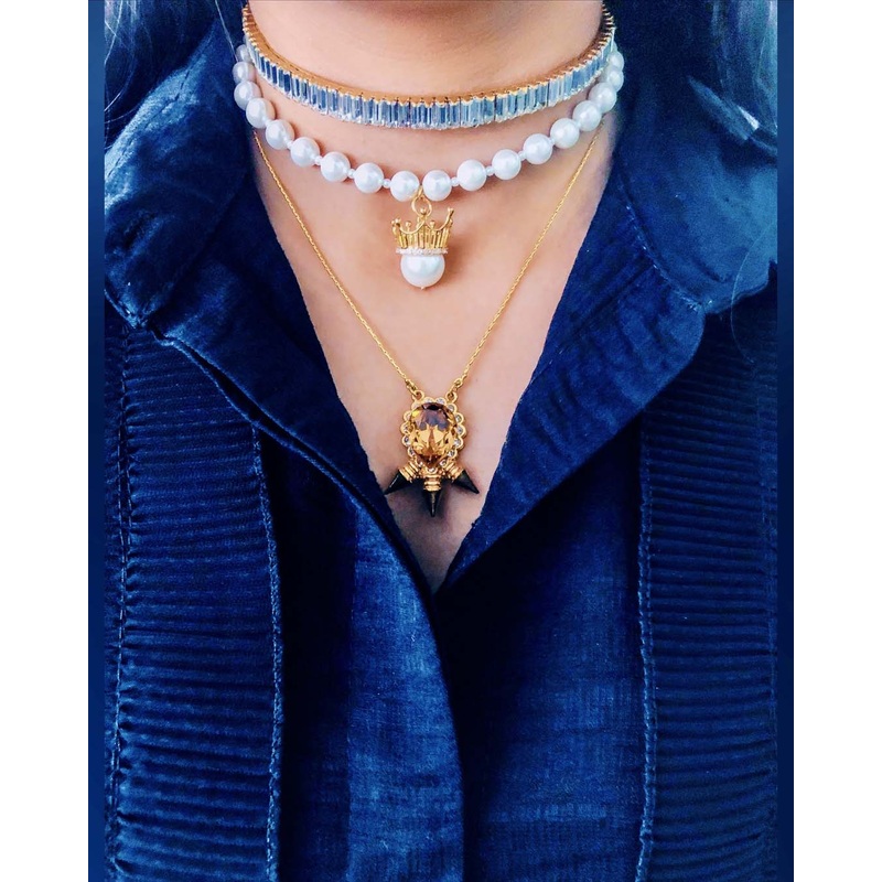 Feel like a princess with this charm style that features a pretty pearl crown adorned with a line of sparkling crystals.