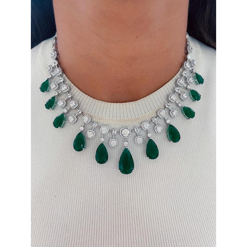 Rabta Emerald Tear Drops Circular Diamond Necklace Set