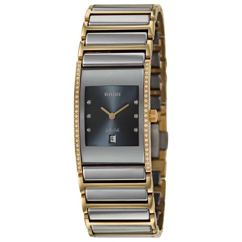 Rado Integral Jubile women's watch. Stainless steel yellow gold PVD coated case on a stainless steel yellow gold pvd coated and ceramos bracelet. Ceramos is made of high-tech ceramic and a metal composite that was designed to have the optimal properties of