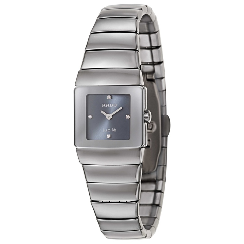 Rado Sintra Jubile women’s watch. Ceramic case on a ceramos bracelet. Ceramos is made of high-tech ceramic and a metal composite that was designed to have the optimal properties of both components. A unique platinum steel look and lightweight material makes it ideal for sharp and edgy designs.