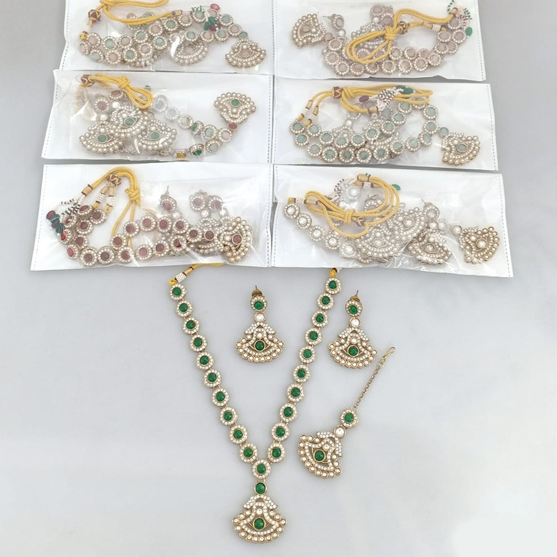 Available in a stunning variety of vibrant and classic colors including Green, Maroon, Multi-color, Green & Pink, White, Light Pink, and Mint Green, this necklace set is designed to perfectly complement any festive, bridal, or traditional outfit. Whether you’re dressing for a wedding, sangeet, mehendi, festival, party, or family function, this necklace set ensures youll stand out with grace and glamour…Note: Image may be vary slightly from the actual product