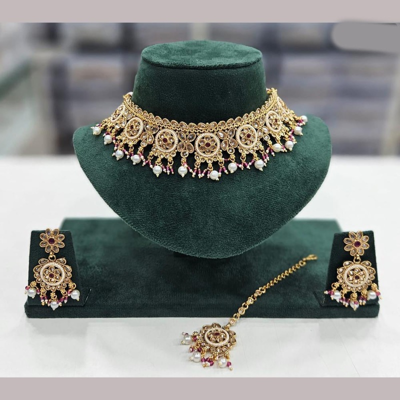 Rajwadi Collection Gold Plated Crystal Stone And Beads Choker Necklace Set
