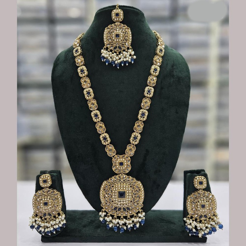 This Rajwadi Collection Gold Plated necklace set features stunning crystal stones and beads, giving it an elegant and luxurious look. Crafted with top-quality materials, this set is sure to make a statement at any occasion. Elevate your style with this exquisite and versatile necklace set…….Note: Image may be vary slightly from the actual product