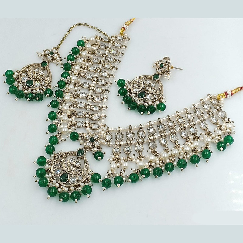 Rajwadi Collection Gold Plated Crystal Stone And Beads Necklace Set