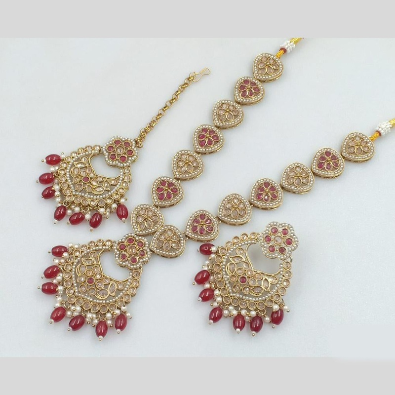 Rajwadi Collection Gold Plated Crystal Stone And Beads Necklace Set
