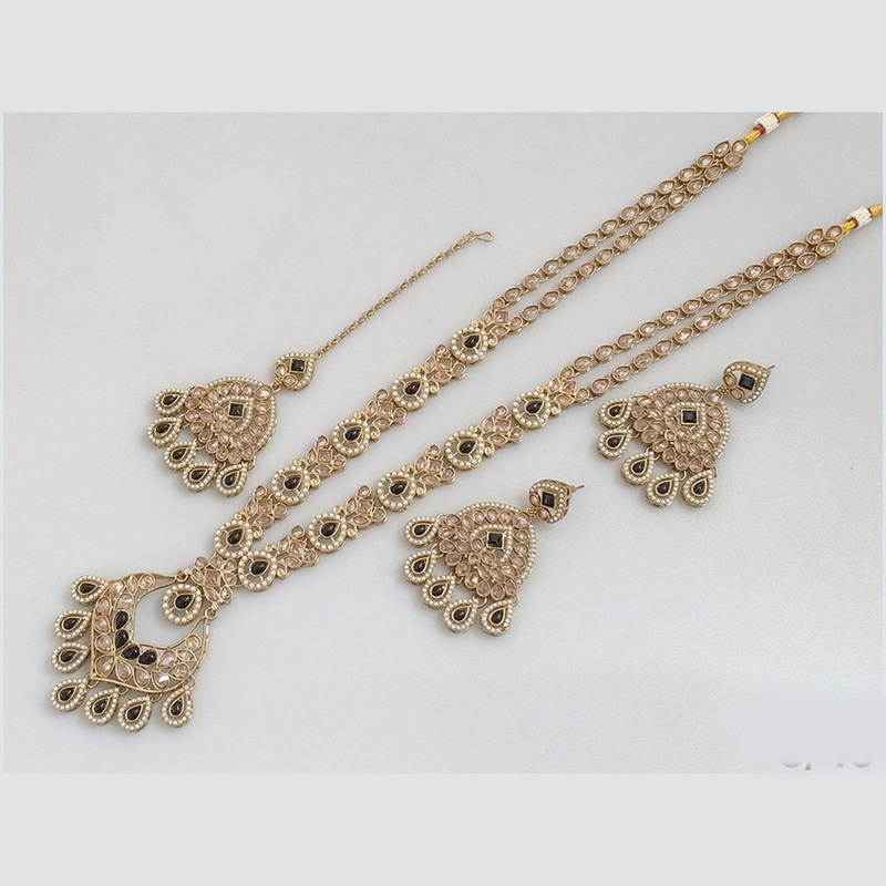 This Rajwadi Collection necklace set features a stunning combination of gold plating, crystal stones, and pearls. Elevate your look with this elegant piece that adds a touch of luxury to any outfit. Perfect for special occasions or everyday wear, this necklace set is sure to make a statement. Note: Image may vary slightly from the actual Product.