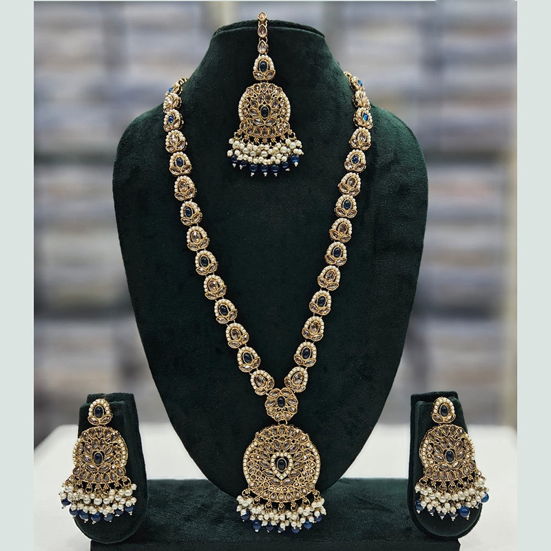 Rajwadi Collection Gold Plated Crystal Stone And Pearls Long Necklace Set