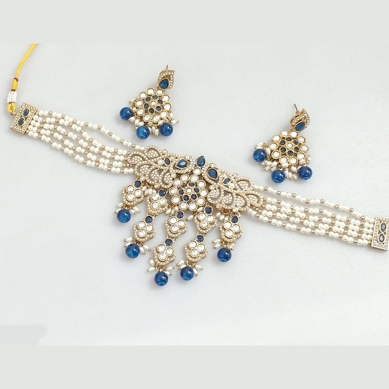 Rajwadi Collection Gold-Plated Embellished with Crystal Stones & Beads Choker Necklace Set