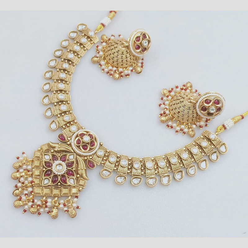 This exquisite Rajwadi Collection Gold Plated Pota Stone And Beads Necklace Set is a must-have for any fashion enthusiast. Its stunning design, crafted with precision and adorned with sparkling pota stones and beads, is sure to elevate any outfit. Add a touch of elegance to your look with this luxurious necklace set…..Note: Image may be vary slightly from the actual Product.
