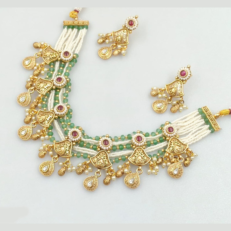 This Rajwadi Collection Gold Plated Pota Stone And Pearls Necklace Set is the perfect addition to your jewelry collection. Crafted with elegant gold plating and sparkling pota stones, it exudes luxury and sophistication. Enhance any outfit with this stunning necklace set, making you stand out with its timeless design and impeccable craftsmanship…..Note: Image may be vary slightly from the actual Product.