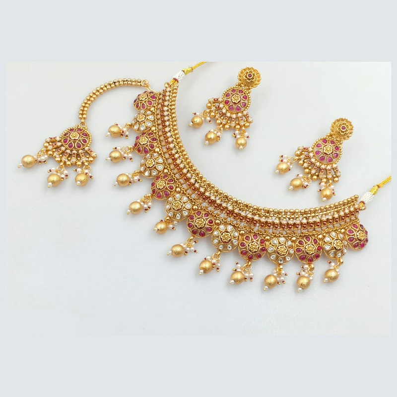 Elevate your traditional look with the timeless elegance of the Rajwadi Collection Gold Plated Traditional Kundan Stone & Pearl Choker Necklace Set. Designed to reflect the grandeur of classic Indian jewelry, this exquisite set features a beautifully crafted gold-plated choker necklace, adorned with premium kundan stones and delicate pearl accents that add a royal touch to any ethnic ensemble……..Note: Image may be vary slightly from the actual product