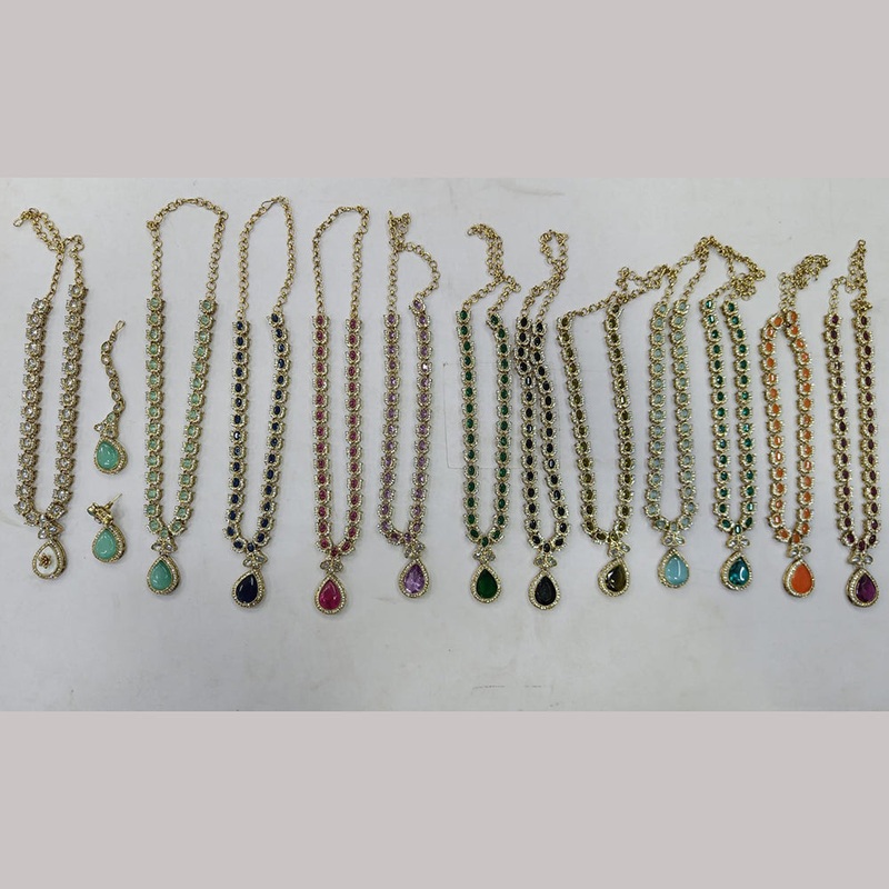 Crafted with the finest materials, the Rani Sati Jewels Gold Plated Austrian Stone Necklace Set is a stunning addition to any jewelry collection. The intricate design, paired with sparkling Austrian stones, elevates any outfit, making it perfect for formal occasions. Own a piece of elegance and luxury with this necklace set. Note: Image may be vary slightly from the actual Product.
