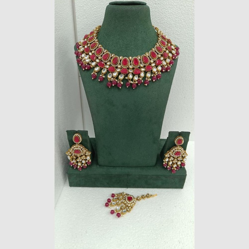 Rani Sati Jewels Gold Plated Crystal and Beads Necklace Set