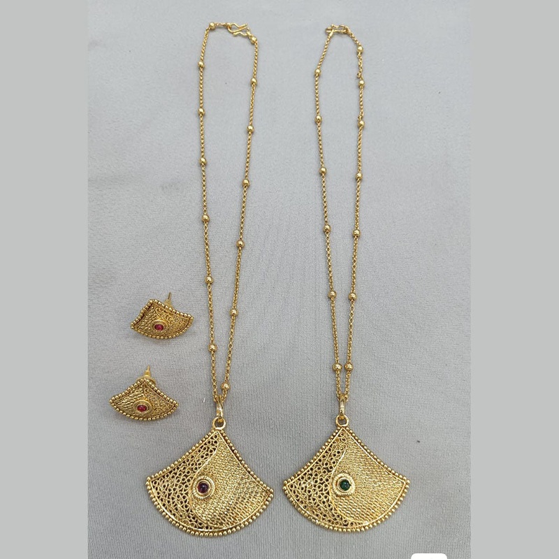 Rani Sati Jewels Gold Plated Pota Stone Chain Pendant Set