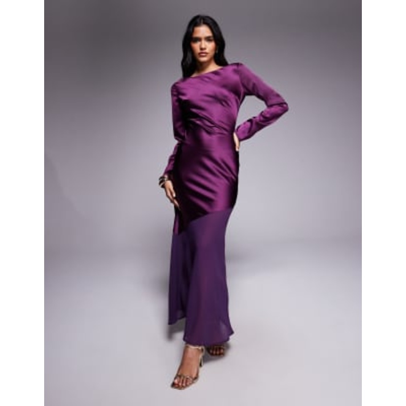 Shop the latest Rare London exclusive satin long sleeve sheer hem maxi dress in purple trends with ASOS! Free delivery and returns (Ts&Cs apply), order today!