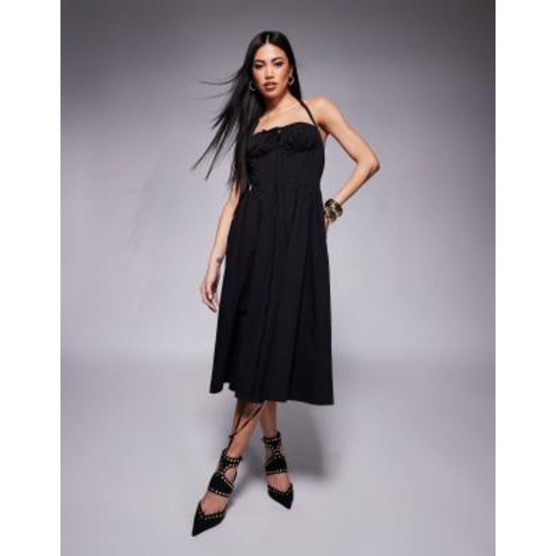 Shop the latest Rare London halterneck milkmaid tie detail midi dress in black trends with ASOS! Free delivery and returns (Ts&Cs apply), order today!