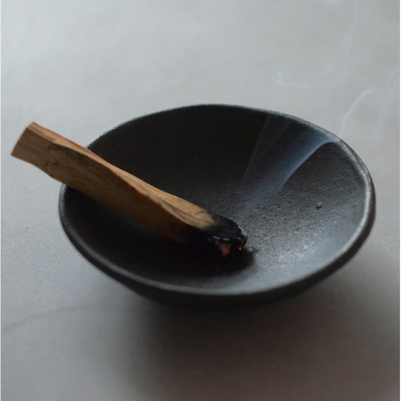 This Handmade Ceramic Smudging Bowl is made with black clay. * Collaboration between Ceramic Artists Marie Martin from ATMA Ceramics and Cedar and Myrrh. * Handmade, Organic Shape, Raw * Dimensions are Approx. 5 x 5 x 1.2 (Actual Shades and Sizes may vary)
