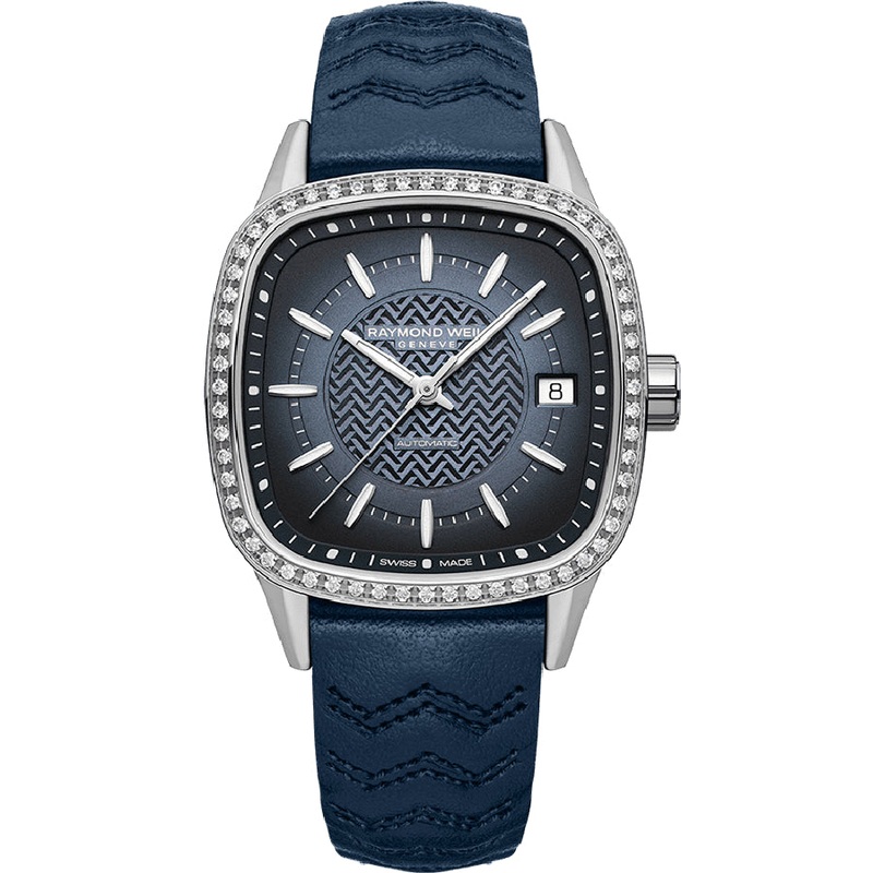 Raymond Weil Freelancer Ladies Blue Dial Leather Watch, 34.5 x 34.5 mm