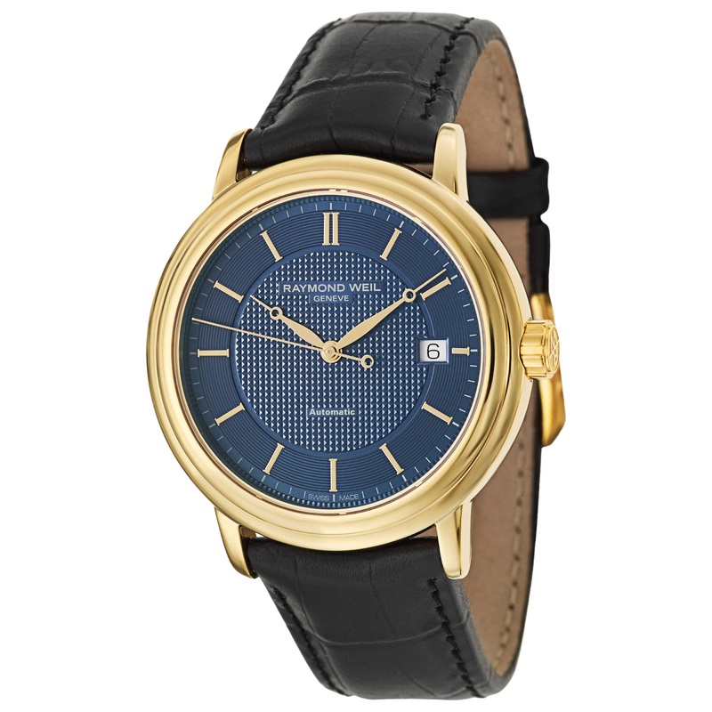 Raymond Weil, Maestro Automatic Date, Men’s Watch, Stainless Steel Yellow Gold PVD Coated Case, Leather Calf Skin Strap, Swiss Mechanical Automatic (Self-Winding), 2837-PC-50001