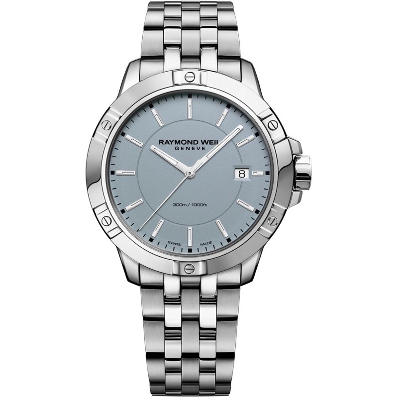 Raymond Weil Watch Tango Mens 8160-ST-50031. The tango collection embodies the passion that RAYMOND WEIL, the Swiss watchmaker, puts into achieving timepieces of both aesthetic sensuality of design and rhythmic perfection. With its refined and modern design, this contemporary collection appeals to both men and women. Featuring a quartz movement, the gents timepieces boast a sober and refined style while the ladies models are graced with mother of pearl and diamonds. Distinctive style with a balance of proportions, the tango watch has a distinguishing signature bezel featuring six decorative screws. Functionality marries with sensual design, making this a watch worn to suit any occasion.