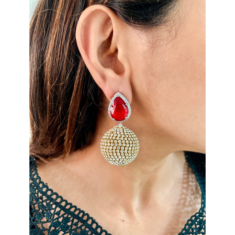 The Red Crystal Ball Drop Earrings are the statement hoops you need !!!Finely hand-crafted with semi precious stones, this earring is sure to steal the spotlight with its intricate work and plating shimmer. These earringswill give your Western ensembles a