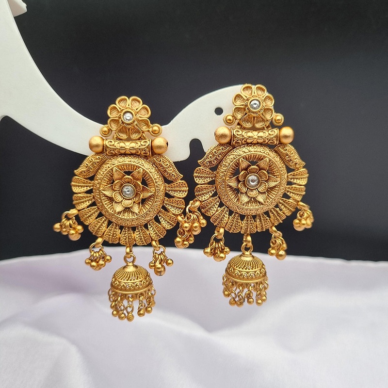 These Reet Revaz Gold Plated Pota Stone jhumki Earrings feature a unique design with a gold-plated finish and Pota Stone accents. Elevate your style and add a touch of elegance to any outfit with these beautifully crafted earrings. Perfect for any occasion, these earrings will make a statement and stand out in any crowd.Note: Image may be vary slightly from the actual product.