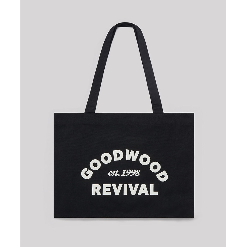 A beautiful cotton tote bag silk screen printed by hand with Goodwood Revival est. 1998 reminiscent of ‘tune up shops’ on the side. A classic tote, made in Europe.