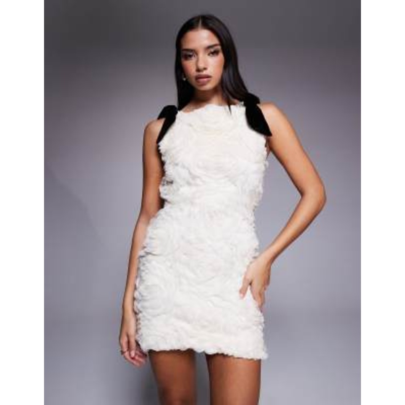 River Island 3D rose mini dress in cream