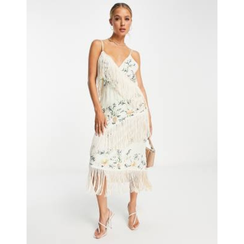Shop the latest River Island embroidered fringe wrap midi dress in cream trends with ASOS! Free delivery and returns (Ts&Cs apply), order today!