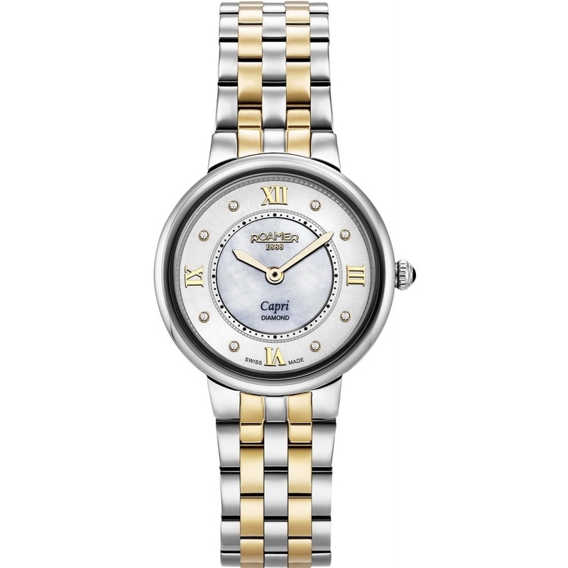Roamer Swiss made, 7 year guarantee. Roamer Watch Capri White MOP Dial 859845 47 29 50. Roamer oF Switzerland has been synonymous with high quality Swiss watches in combination with classically elegant designs since 1888. The brand steadily continues its success story with ongoing innovations, excellent materials, exquisite craftsmanship and precise Swiss movements. Perfect attention to detail and an exceptional & personal commitment makes ROAMERs timepieces truly unique.