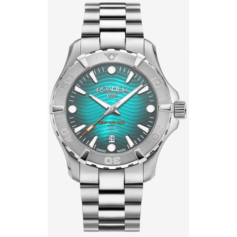 Roamer Watch Deep Sea 200 Marine Blue 860833 41 05 70. Roamer oF Switzerland has been synonymous with high quality Swiss watches in combination with classically elegant designs since 1888. The brand steadily continues its success story with ongoing innovations, excellent materials, exquisite craftsmanship and precise Swiss movements. Perfect attention to detail and an exceptional & personal commitment makes ROAMERs timepieces truly unique.