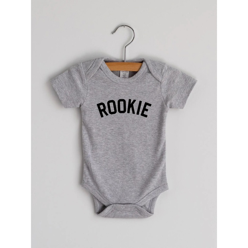 This super-soft infant outfit features modern typography in crisp black ink on a luxe gray colored bodysuit – designed with love and screen printed in-house. Perfect for sports fans and those serving in local services or armed forces.