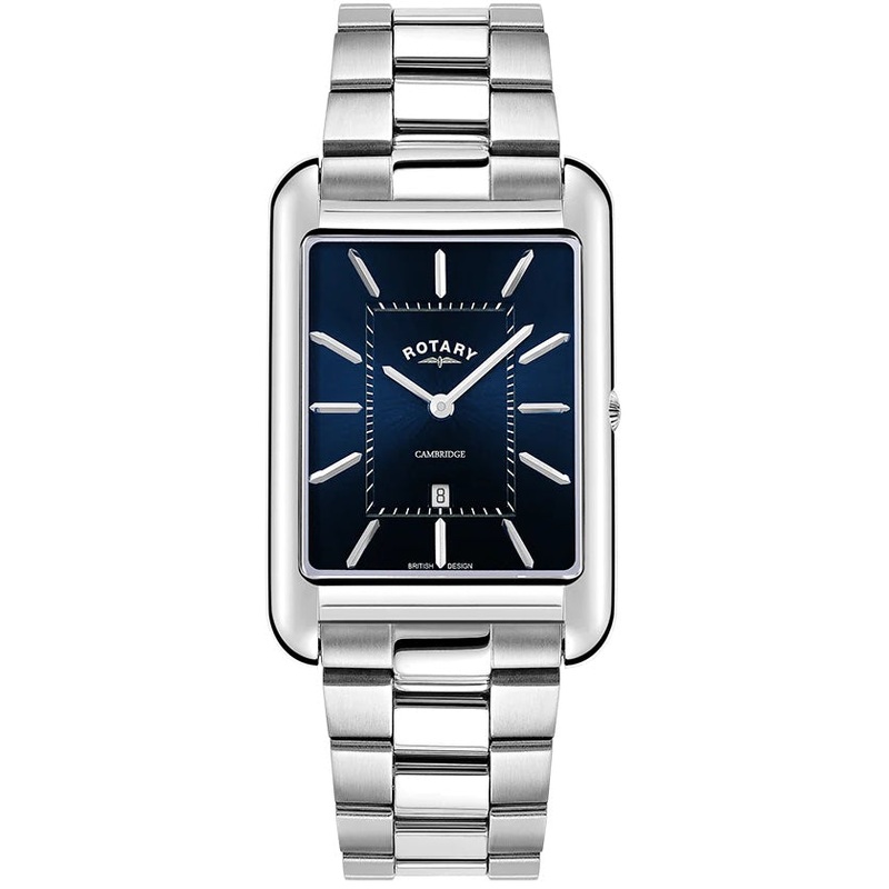 Rotary Watch Cambridge Mens GB05280/05. Embracing the unity of tradition and contemporary design, the new Cambridge features a stunning shaped case, hidden crown, applied faceted indexes and hands with a gradient emerald sunray dial to provide a rich colour palette, featuring a date window at six. This classical watch is meticulously built, housing a quartz movement and is water resistant up to 50m, making it both precise and practical.