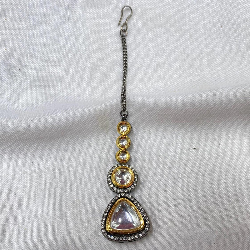 Elevate your look with our Royal Kundan Jewellery 2 Tone Plated Kundan Stone Maangtikka. This stunning headpiece is expertly crafted with premium materials and features intricate Kundan stones for a luxurious appearance. Add a touch of elegance and sophistication to any outfit with this must-have accessory…..Note: Image may vary slightly from the actual Product