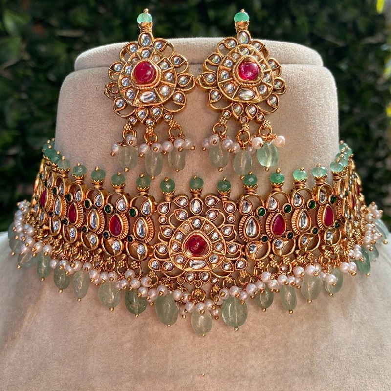 Royal Kundan Jewellery Gold Plated Kundan Stone And Pearls Choker Necklace Set