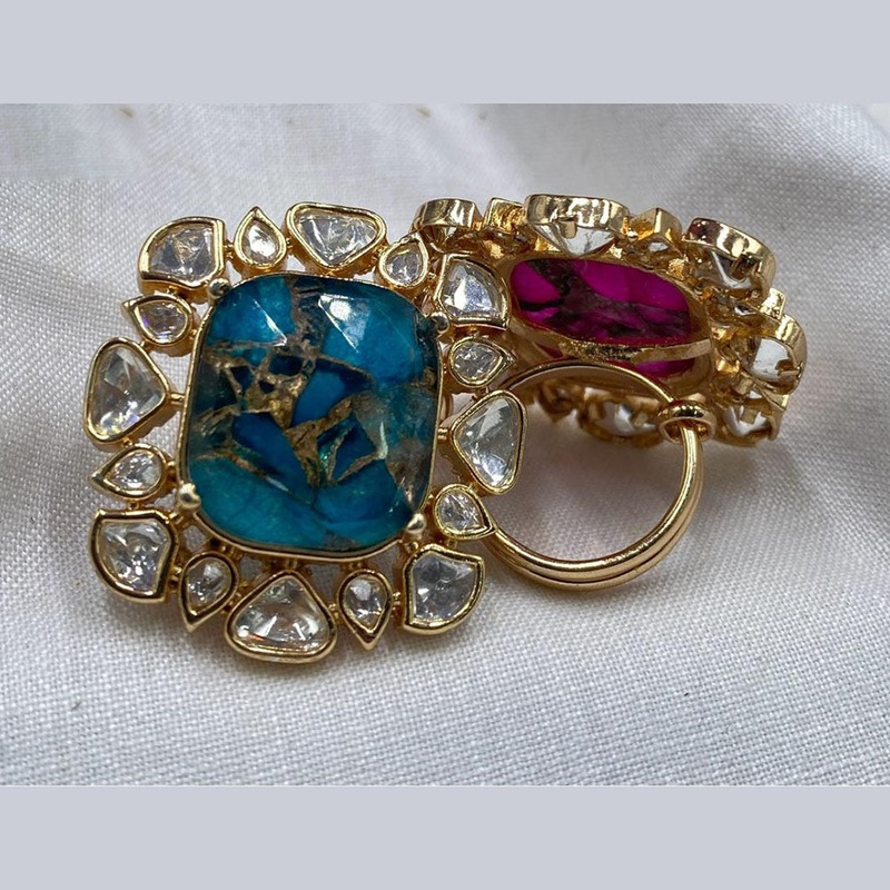 This stylish finger ring boasts a luxurious gold-plated finish and features exquisite Polki Kundan gems. Elevate your jewelry collection with this Prime Kundan creation, perfect for adding a touch of elegance to any outfit. Crafted with precision, this ring is sure to impress with its fine details and timeless design…. Note: Image may vary slightly from the actual Product