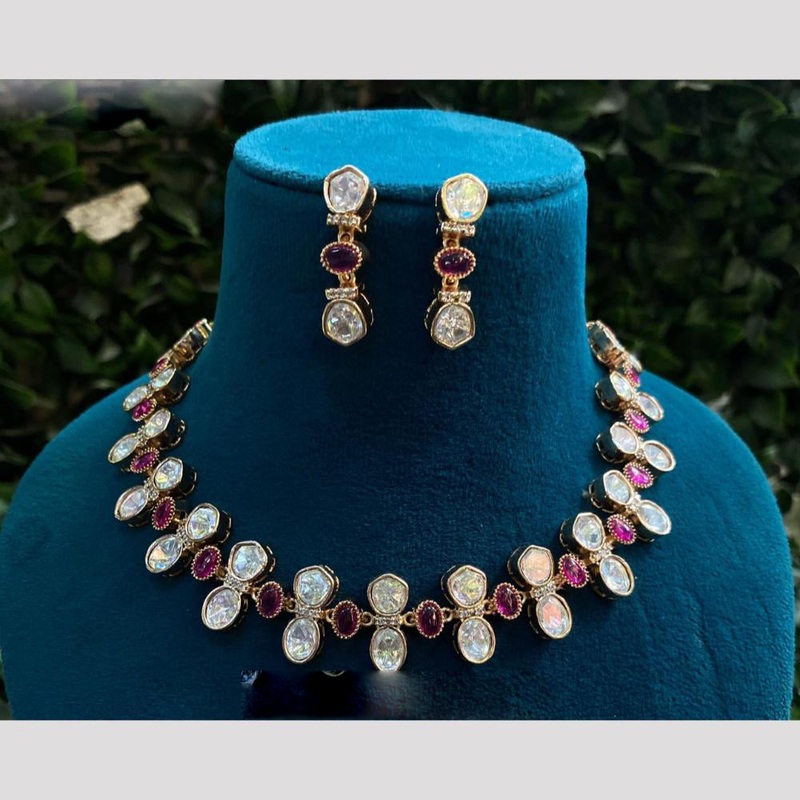 Royal Kundan Jewellery Gold Plated Polki Kundan Stone Necklace Set